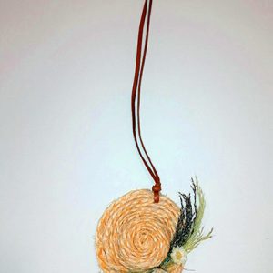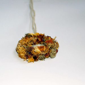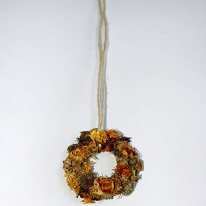 Colgante de flores secas con tonos ocres y amarillos con materiales naturales