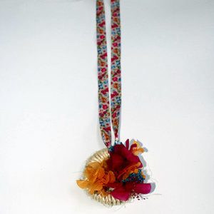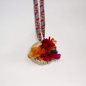 Colgante Rosa y Naranja con materiales naturales y flores liofilizadas y preservadas