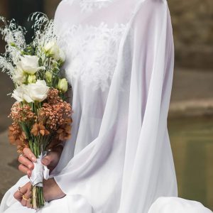 Ramo de novia Hana de flores naturales y preservadas con tonos blancos, crema y ocres